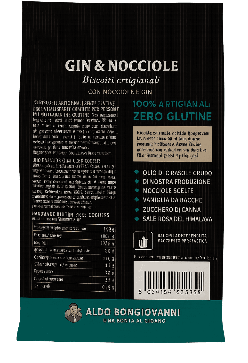 Questi biscotti si distinguono per la loro croccantezza e per l'armonioso equilibrio tra sapore e consistenza. La struttura leggera e friabile permette di percepire distintamente le note aromatiche del gin e la morbidezza della nocciola, creando un'esperienza gustativa completa ad ogni morso.