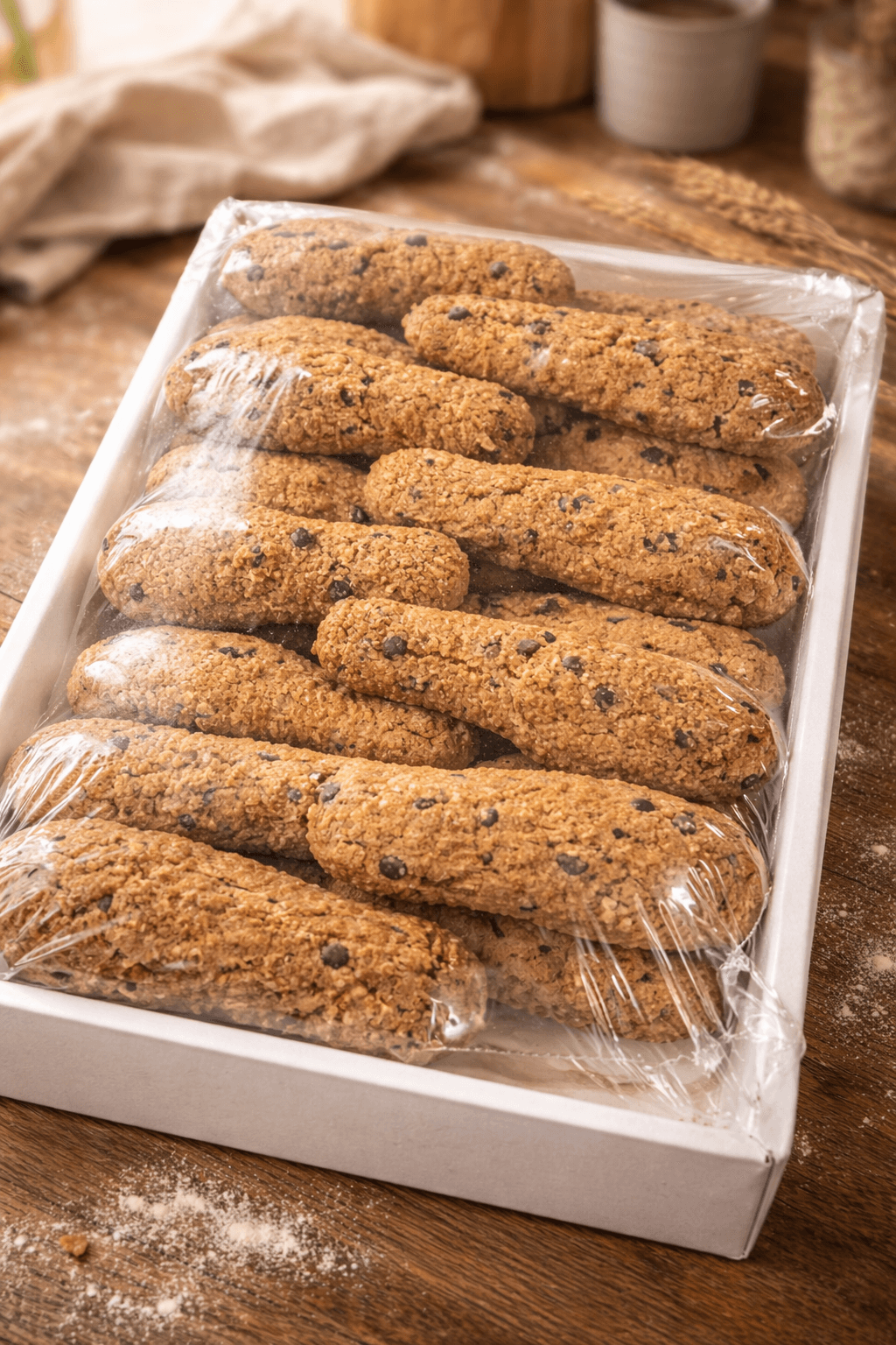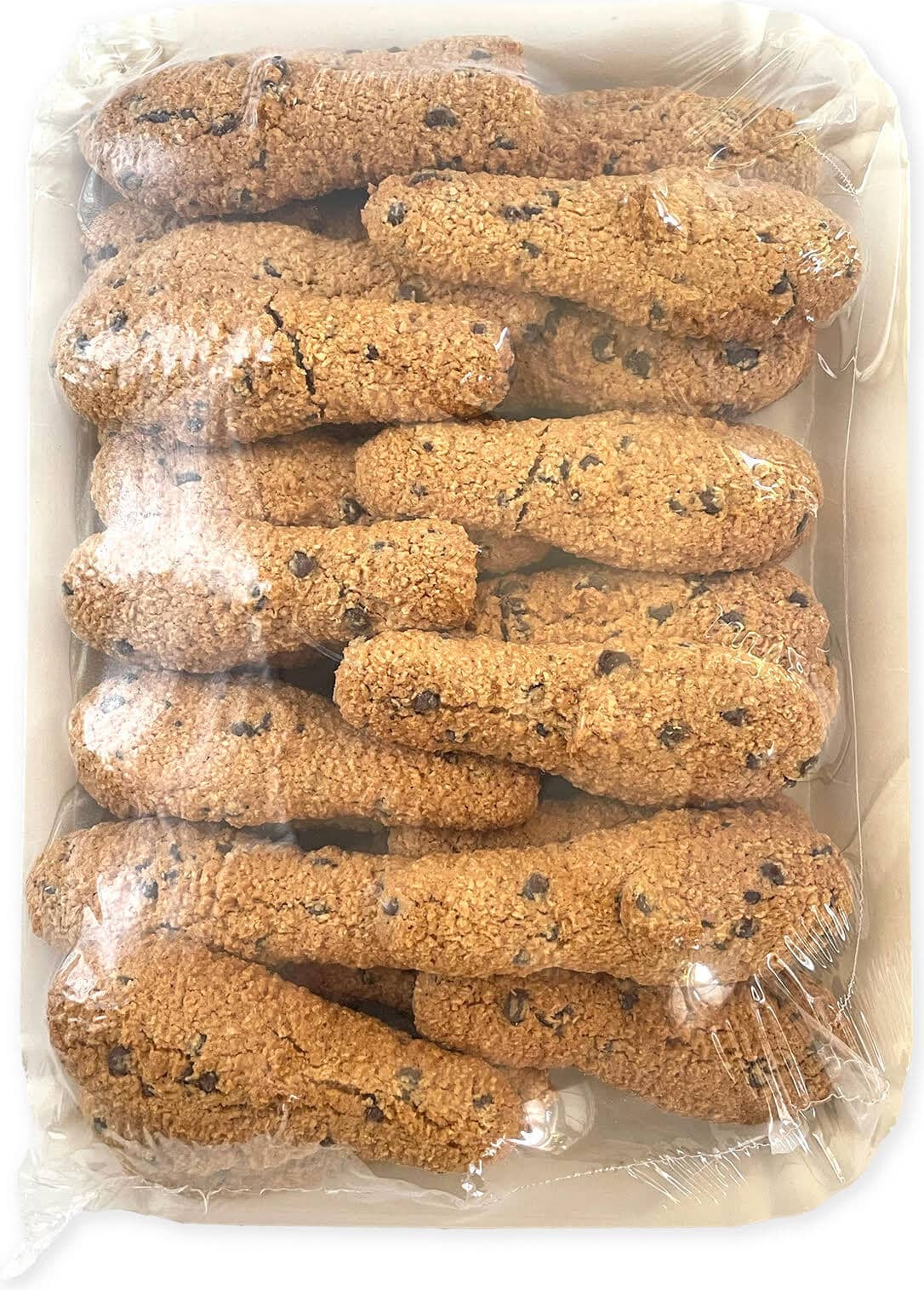 Grazie alle gocce di cioccolato fondente e alle scaglie di cocco, offrono una consistenza croccante con un gusto equilibrato tra dolce e aromatico. La loro struttura non si sgretola, mantenendo il biscotto integro al morso.
